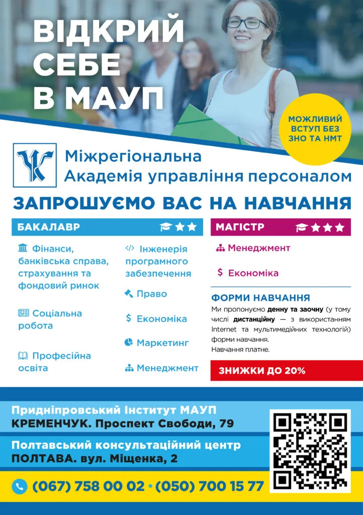 Заклад вищої освіти. Фінансування: Приватна. Заснований у 2000 році. Директор: Татарінов Вадим Вадимович. Кількість факультетів: 1. Адреса: просп. Свободи, 79, м. Кременчук. Контакти: тел: 0677580002, email: referent@ki-maup.com.ua